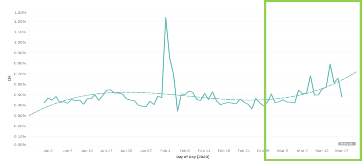 Companies who have chosen to decrease their paid social presence or pause it together are likely not only seeing a drop in their paid social traffic, but also their organic social traffic, and if they are also not involved in a community management strategy, they are potentially missing a key opportunity to interact with their customers. Those companies that are maintaining their social presence through paid campaigns and community management will likely be better positioned for an upswing in the coming weeks and months when the world begins to emerge from the current situation.