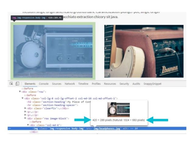 As you can see from the page element, this image has been uploaded at 1024 x 683 pixels, but the user will only ever see it at a maximum of 420 x 289, less than half the upload size.