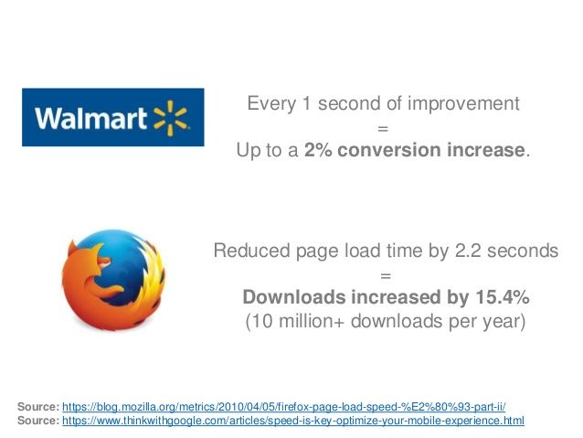When Firefox increased average page load time by 2.2 seconds, form downloads increased by 15.4%. That equates to more than 10 million downloads per year.