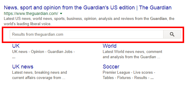 In some cases, sitelinks will also appear with a handy searchbox which lets the user search within your site directly from the SERP.