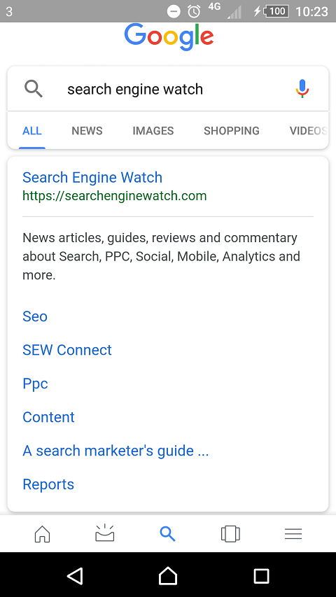 You can get up to six sitelinks for your SERP listing, plus a searchbox if you can wrangle one. On desktop, this means that four or five times as much SERP space is given over to your listing, while on mobile, a sitelinked listing can take up the entire screen.