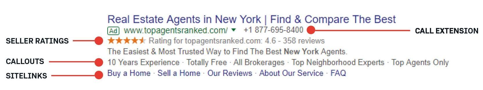 Some of the ad extensions available are: