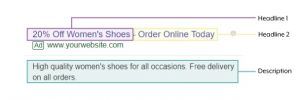 Text ads have three primary elements:
