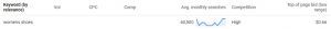 By dividing the target cost-per-conversion by the CPC, we can calculate that 1 in 30 people who visit the website need to become a customer, which is just below a 3% conversion rate, meaning it’s competitive but possible to compete and make a good ROI on this keyword.