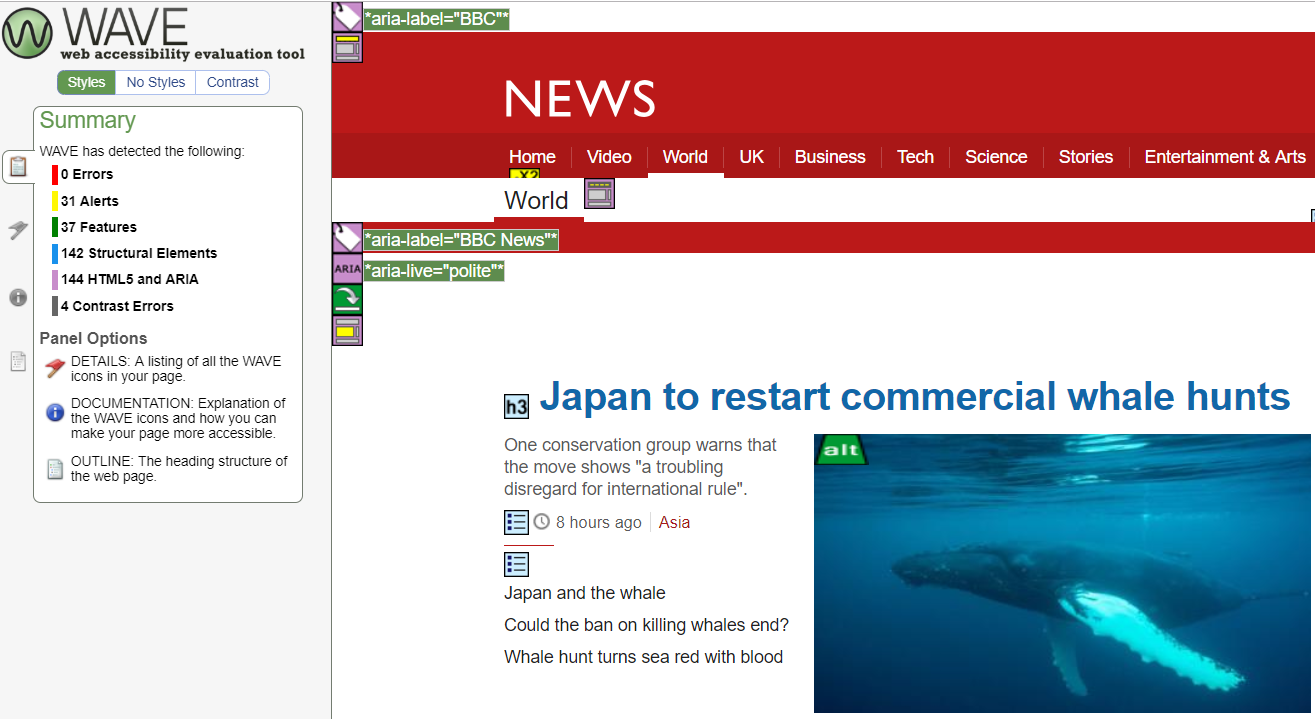 This tool evaluates web content accessibility within Chrome and Firefox browsers. WAVE provides 100% secure and private accessibility reporting. The plugin checks password-protected, intranet, sensitive or dynamically generated web pages.