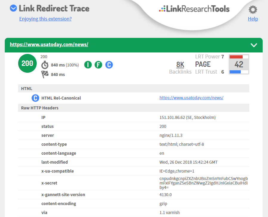 It’s a great tool for tracking redirect path. The tool analyzes HTTP Headers, rel-canonicals, robots.txt, link power, etc. You can use Link Redirect Trace extension to analyze your competitors, your on-page and off-page SEO, and other critical factors.