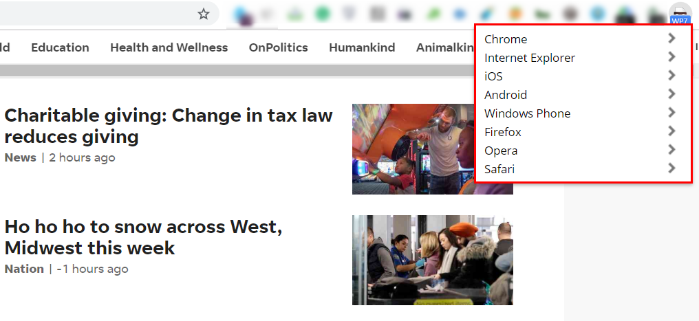 The tool will help you switch quickly between user-agent strings. If you want to test how your page responds to different browsers, this plugin will let you do it. Due to User-Agent Switcher, you can browse with predefined user-agents or add your own ones.