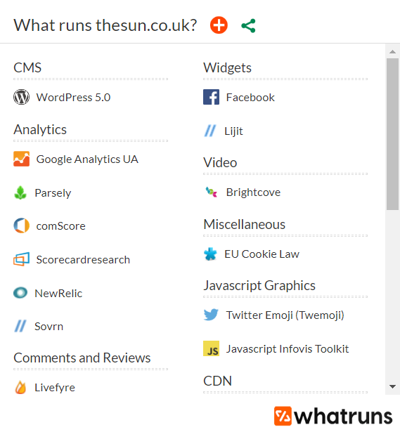 This extension lets you find out what runs any website. You, ll get all the technologies used on websites you visit: