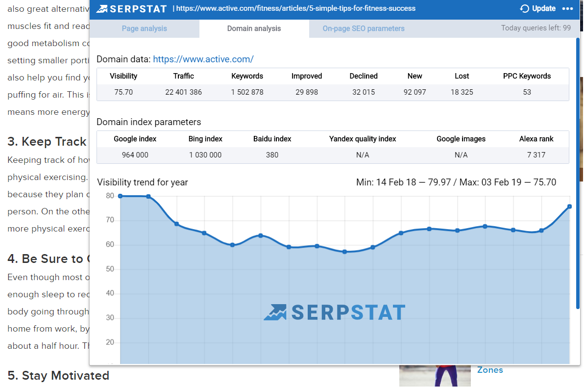 Serpstat SEO & Website Analysis Plugin has now three tabs: Page Analysis, On-page SEO parameters, and Domain Analysis. Here are the most crucial parameters you’ll get with the plugin: