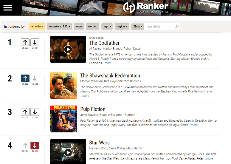 One of Ranker’s most evergreen pieces of content is a list ranking the ‘Best Movies of All Time’ – which is more than 5,000 items long.