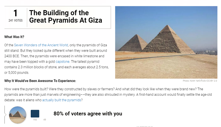 Voting on a list of ‘Historical events you most want to go back and see’ on Ranker