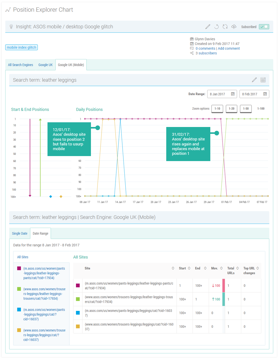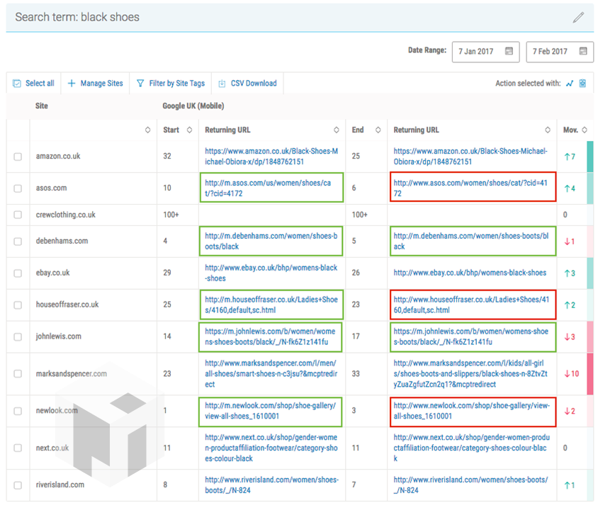 “One of the examples, a large fashion retailer (ASOS), is further complicated by the fact that the US mobile page ranking 1st in UK mobile search has been replaced by the UK desktop equivalent (which now still redirects to the US version when accessed through SERPs).