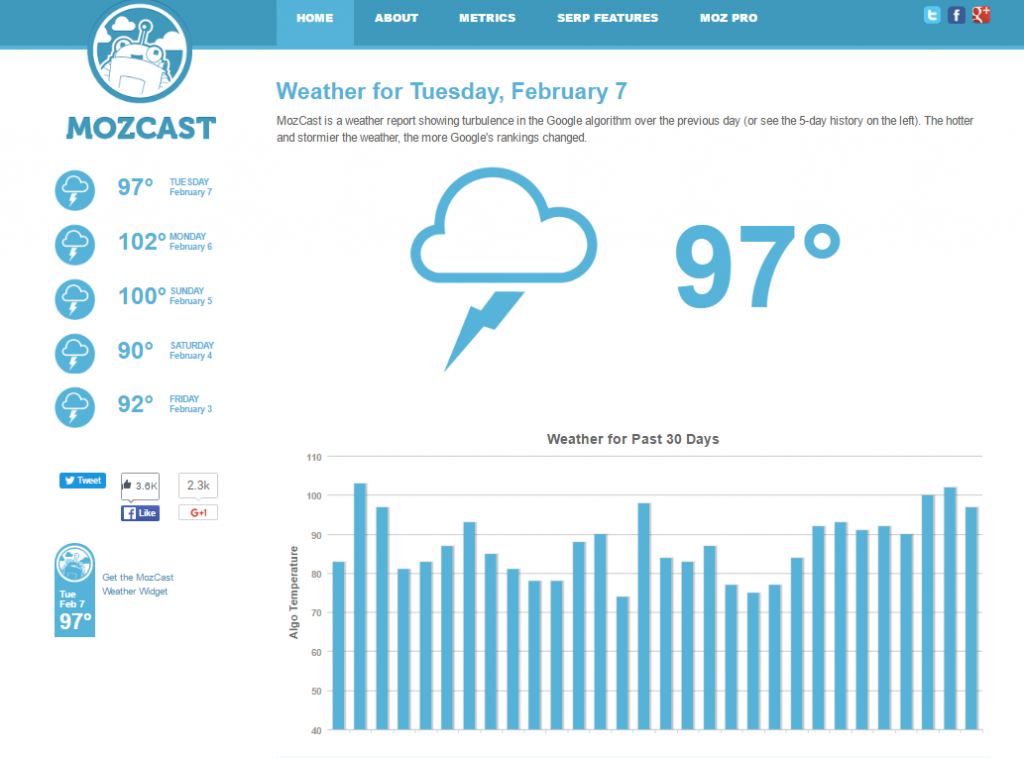 Still, this sudden switch seemed unprecedented, and Mozcast’s weather report – which reflects the current turbulence of Google’s algorithms by how hot and stormy the weather is – was showing some distinctly tempestuous weather on Sunday 5th and Monday 6th November.