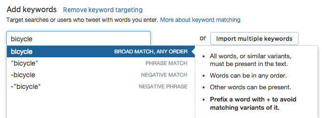 - Keyword: Target people who used a particular keyword in their recent tweets