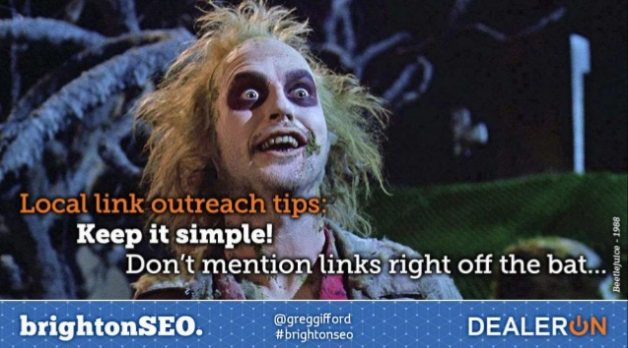 At Brighton SEO last Friday, master of local SEO Greg Gifford shared some “righteous” tips for a kickass link-building strategy, in his signature flurry of slides and movie references – this time to 80s movies.