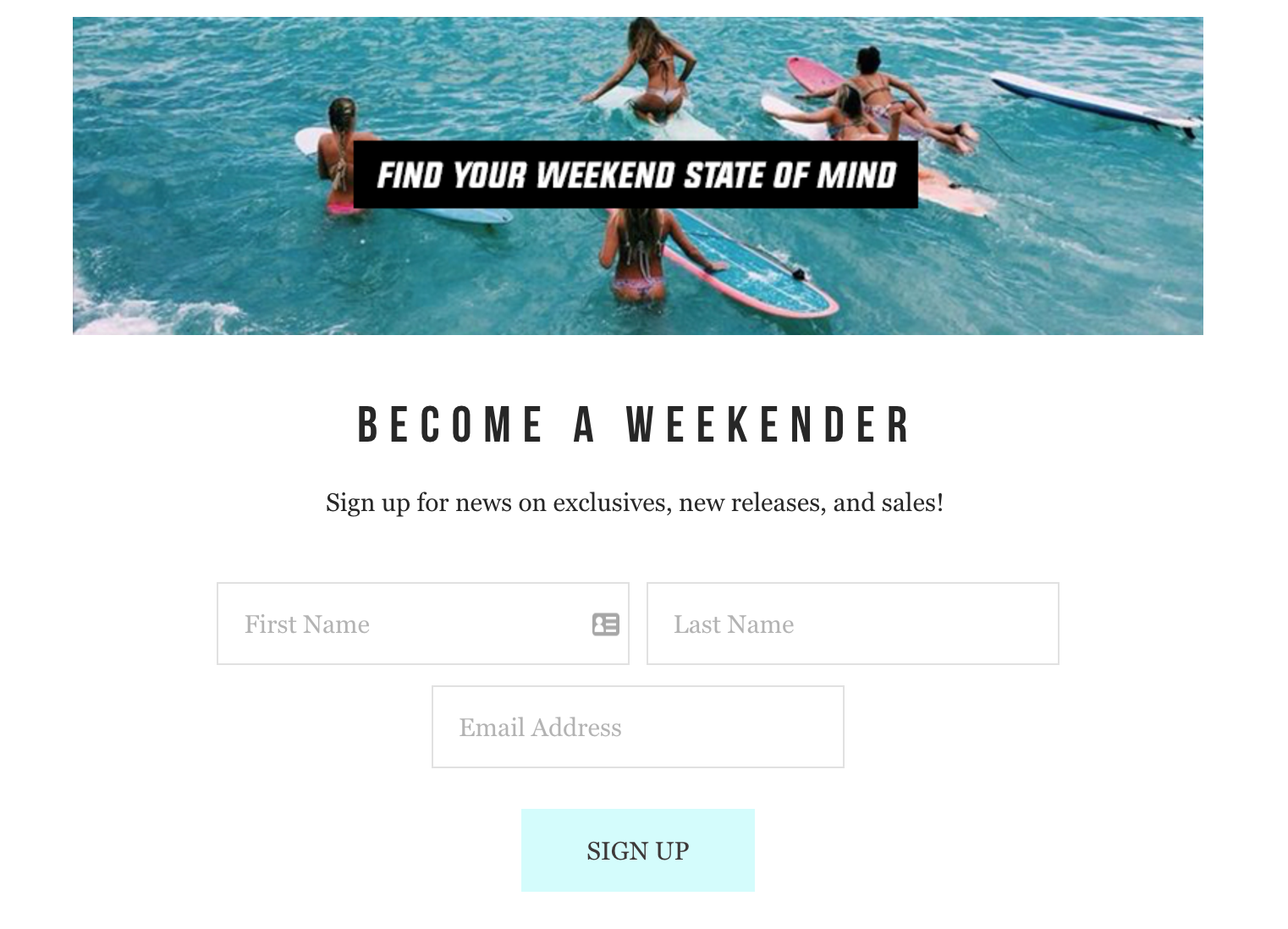 The trigger gets even stronger when signing up to the newsletter, by calling for all the weekenders to find their “weekend state of mind.”