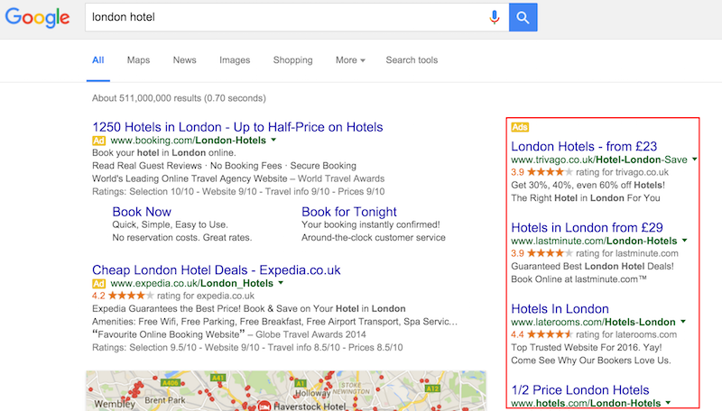 Well for regular users, the right-hand space will still be utilised for Product Listing Ads (PLAs) as well as Knowledge Graph Boxes, so you probably won’t notice much of a difference there. However the continual ‘pushing down’ of organic listings will certainly be an issue for many of us.