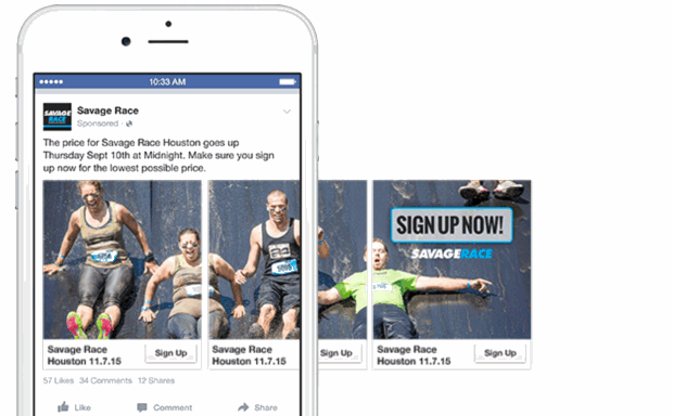 Carousel format is a growing trend in Facebook advertising and according to Kinetic Social, it drives 10 times more traffic to a brand’s site comparing to other types of ads.