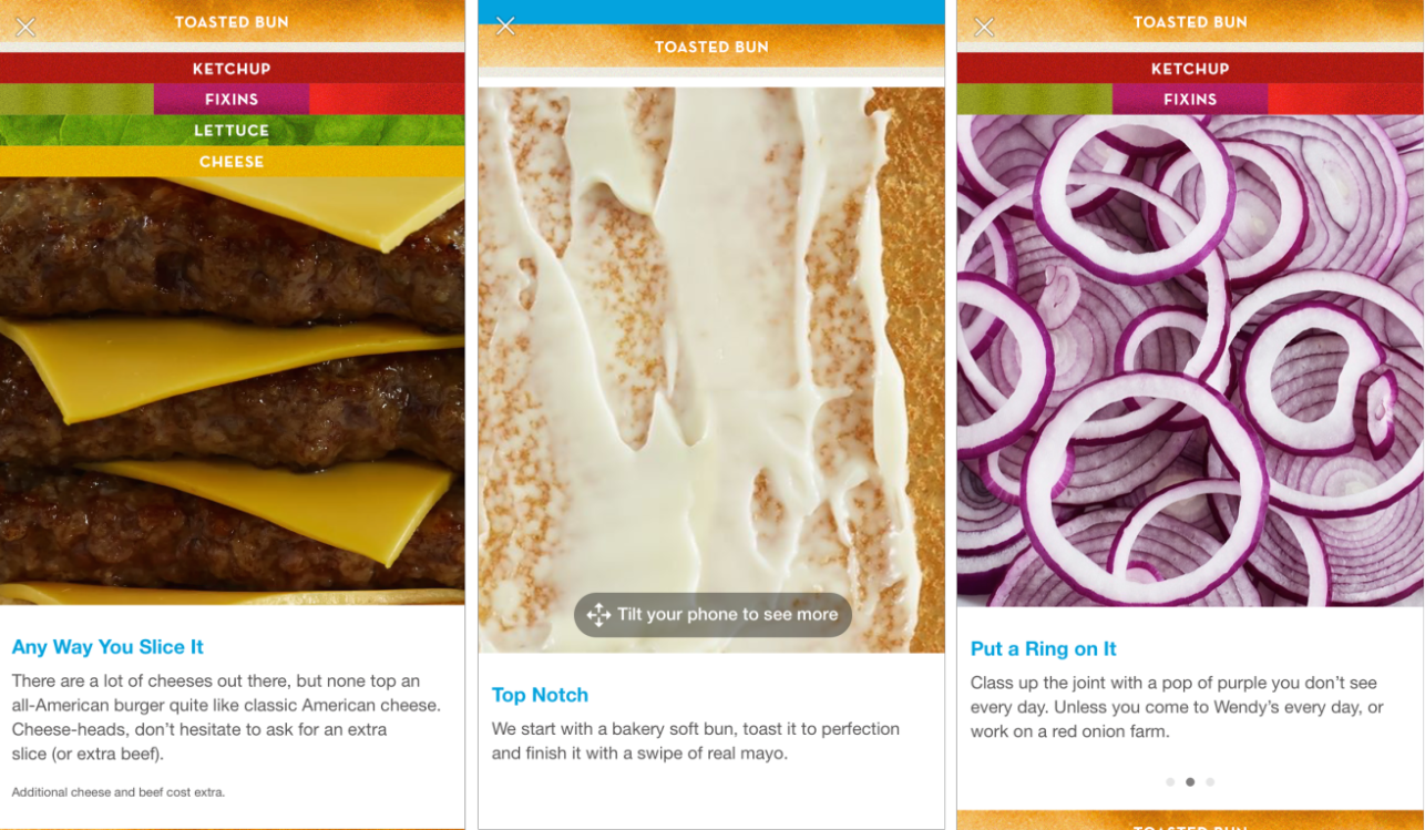Coca-Cola and Burberry were among the first brands to experiment with the Canvas ads, while Wendy’s took its creativity to the next level by encouraging users to swipe the images to discover all the ingredients of their popular cheeseburger.