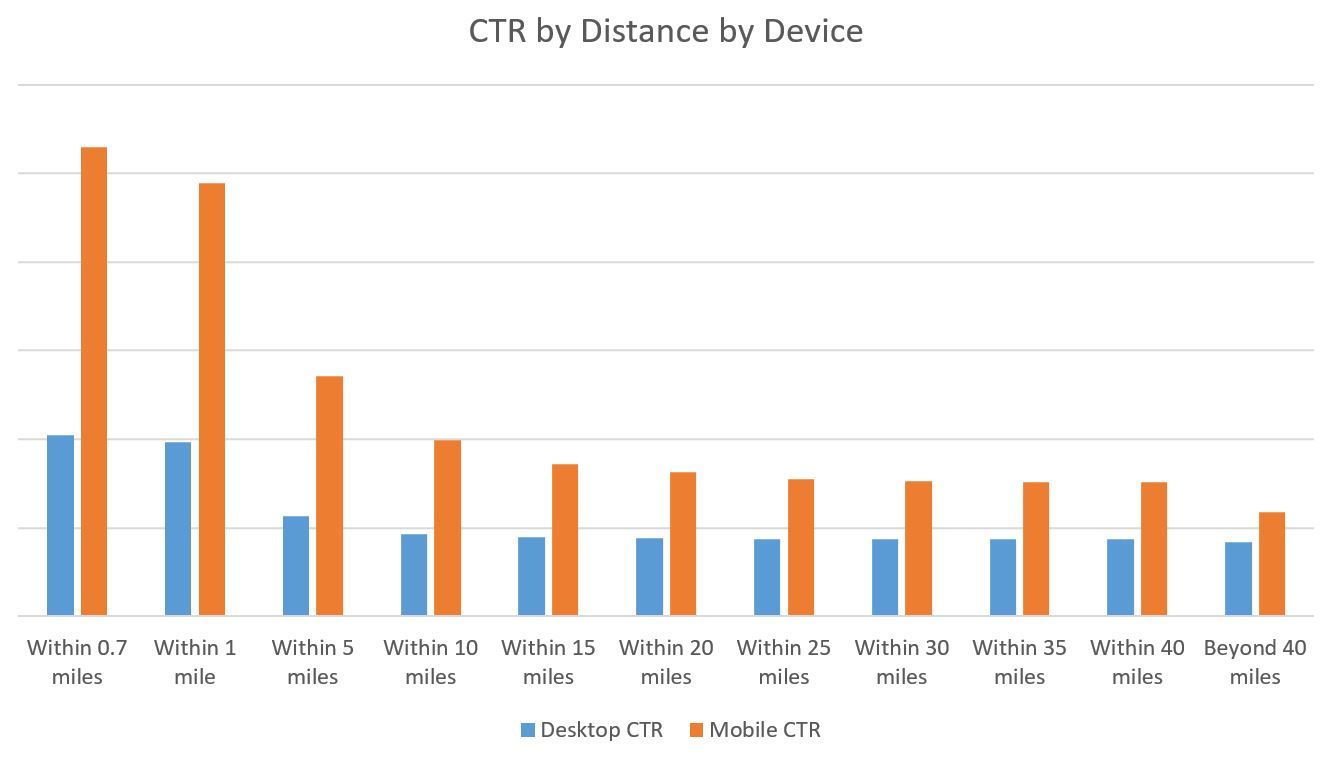 How distance impacts CTR, CPC and click percentage in local search advertising