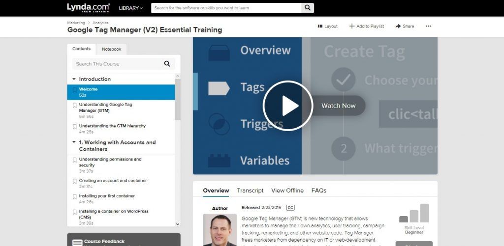 If you’ve ever browsed through Lynda.com’s extensive library of tech-related videos, you probably won’t be surprised to learn that they offer a Google Tag Manager course.