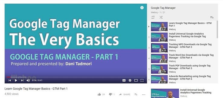 Weboq’s Google Tag Manager YouTube playlist starts with the basics