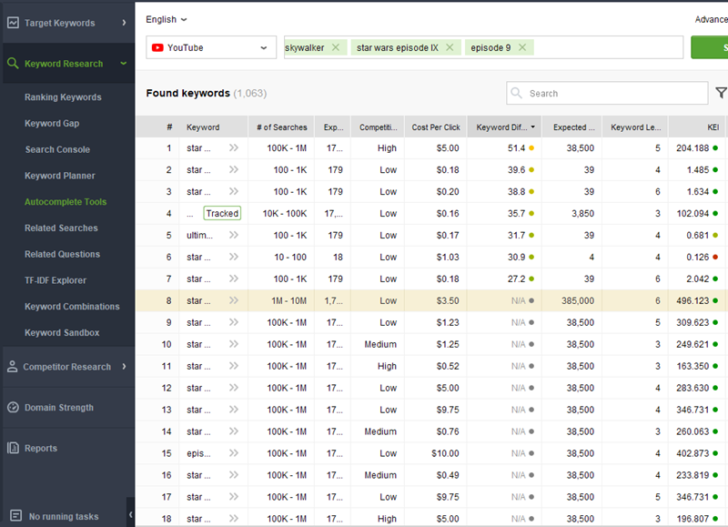 A useful feature, among other things, is that you can sort your keywords by their length — this helps you better target those amazing long-tail keywords, which usually bring your videos a lot of clicks.