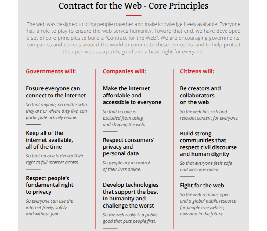 On Monday, November 5, Tim Berners-Lee unveiled a document called “The Case for the Web” which outlines principles to protect and enhance the web’s future, as well as craft a collective contract for May 2019.