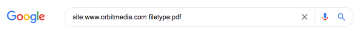 To use this search operator, simple type in “site:yourwebsite.com filetype:pdf” like so: